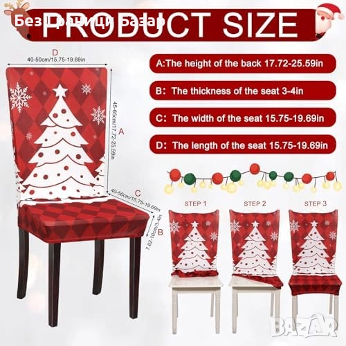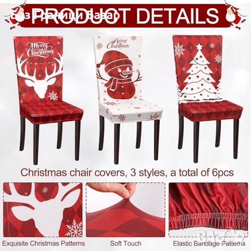 Комплект от 6 еластични калъфа за коледни столове – перфектни за празничната трапеза