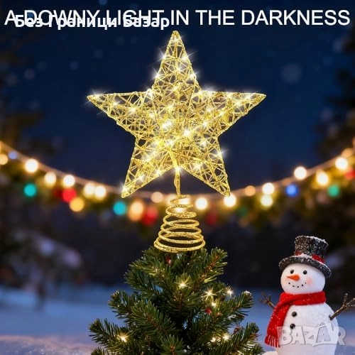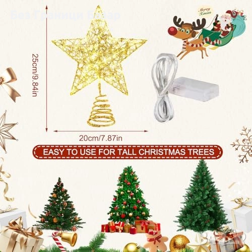 Нова Светеща звезда за елха 25см златна метална украса дом Коледа стая