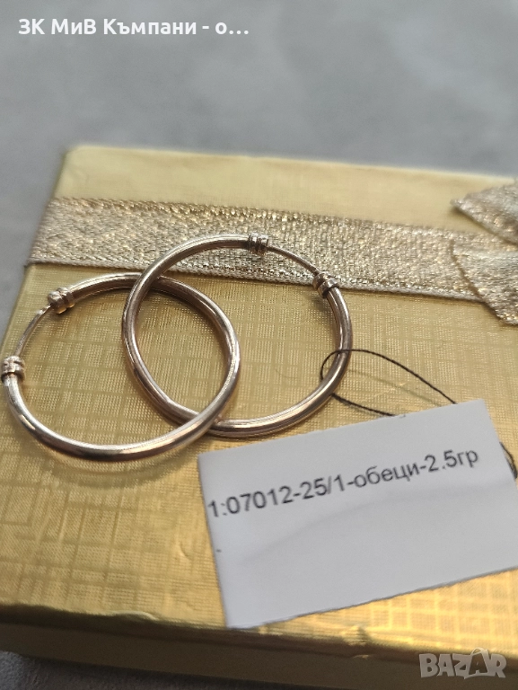 Златни дамски обеци 2.5гр-14к → Обява 52698154