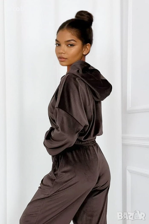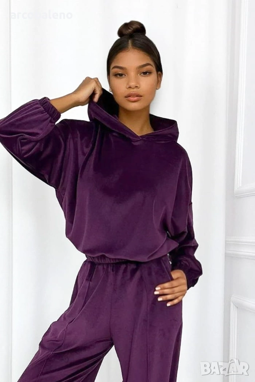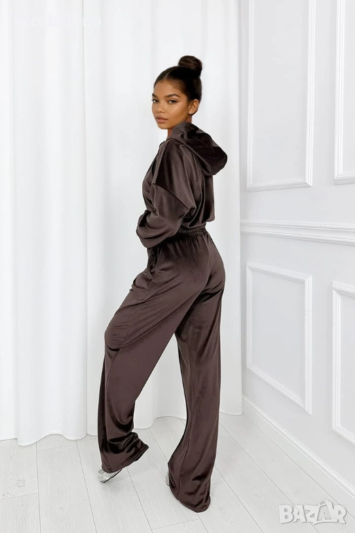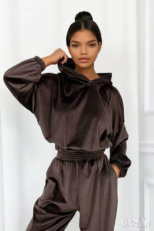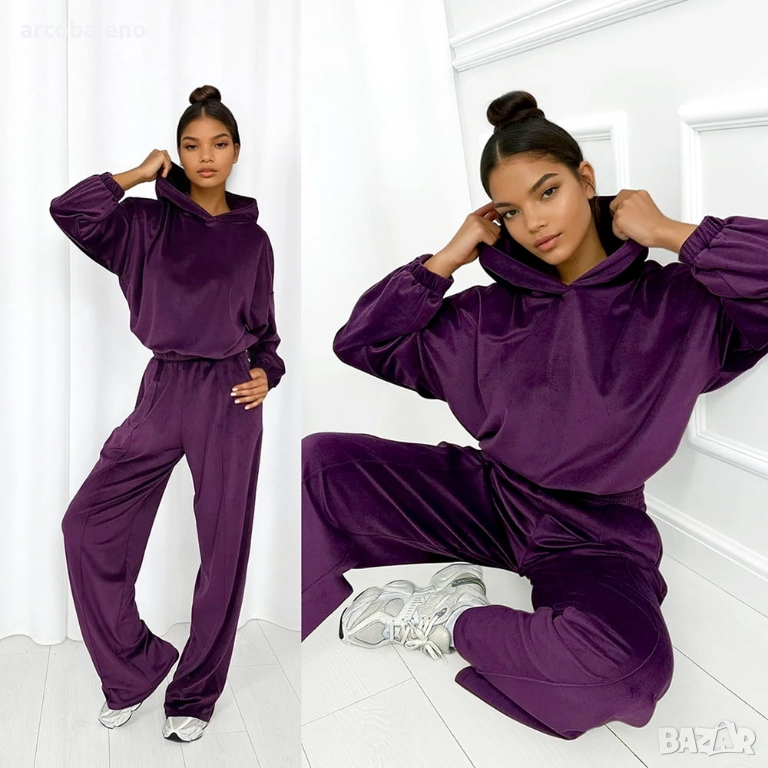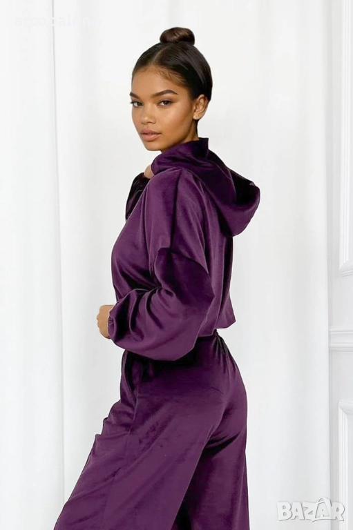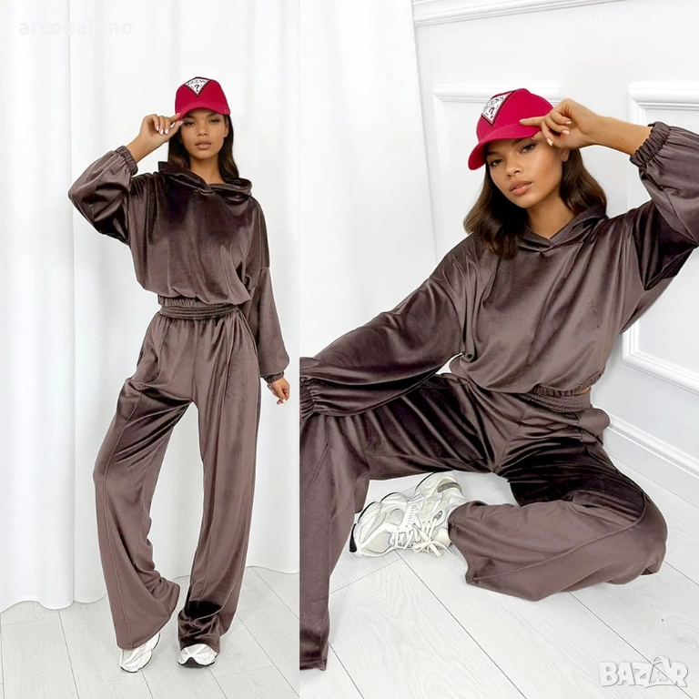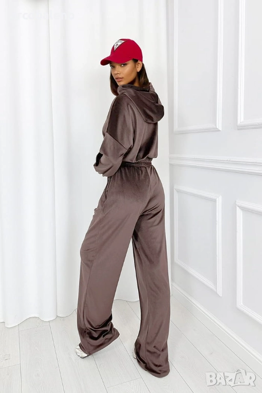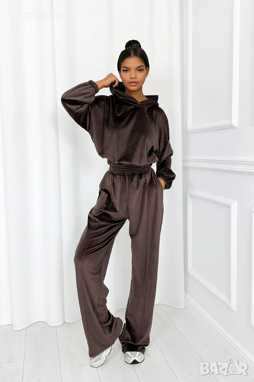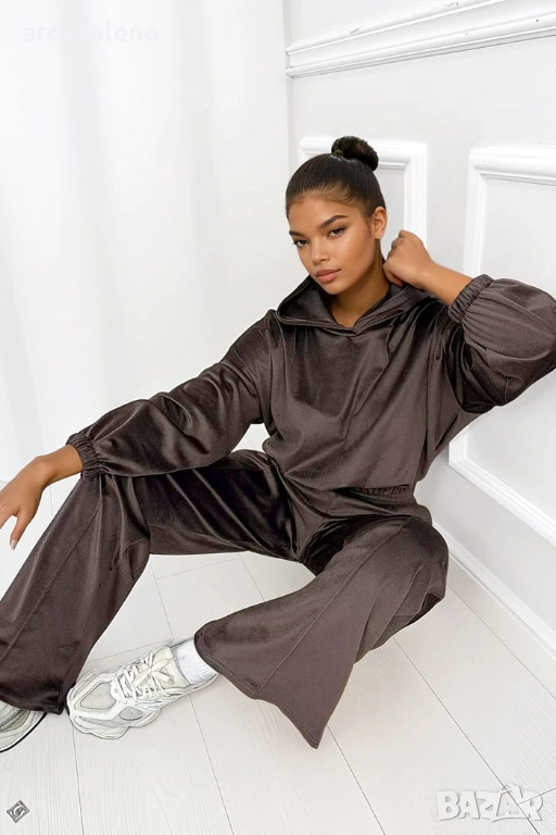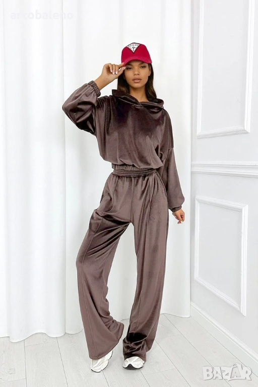 Комплект, който съчетава комфорт със стилен, непринуден вид. Късият суичър с качулка, съчетан с широки панталони, създава балансиран тоалет, а качулката и практичният джоб добавят комфорт и непринудено излъчване. Изработен от мек и приятен на допир материал.