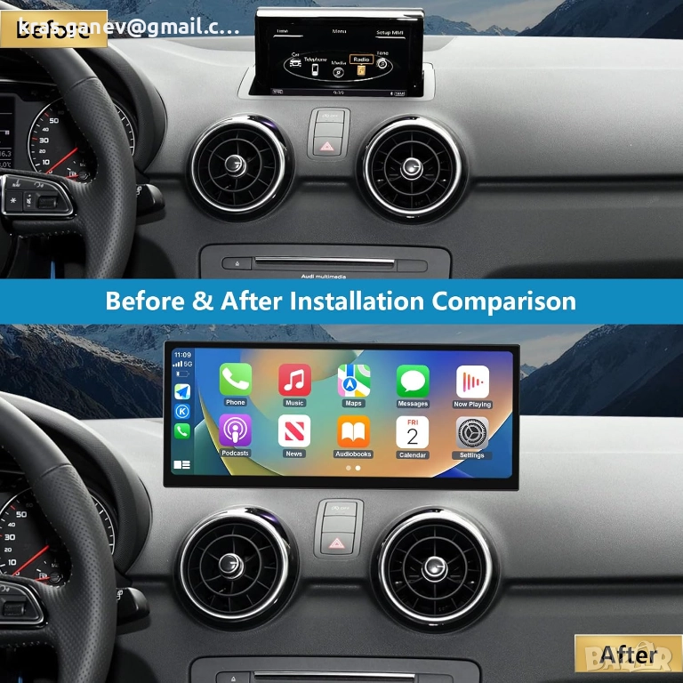 Автомобилно радио 12,3-инчов сензорен екран с безжичен Carplay и Android за Audi A1 2012-2018 с 3G MMI/RMC система, поддръжка на Mirrorlink, камера, навигация, Siri, музика