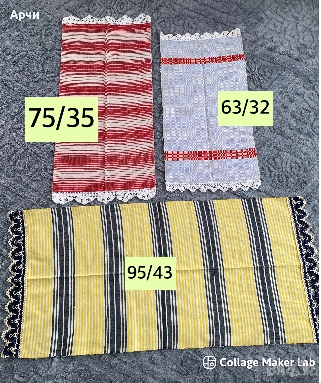 Кенарени месали с ръчно плетени дантели ,неизползвани
