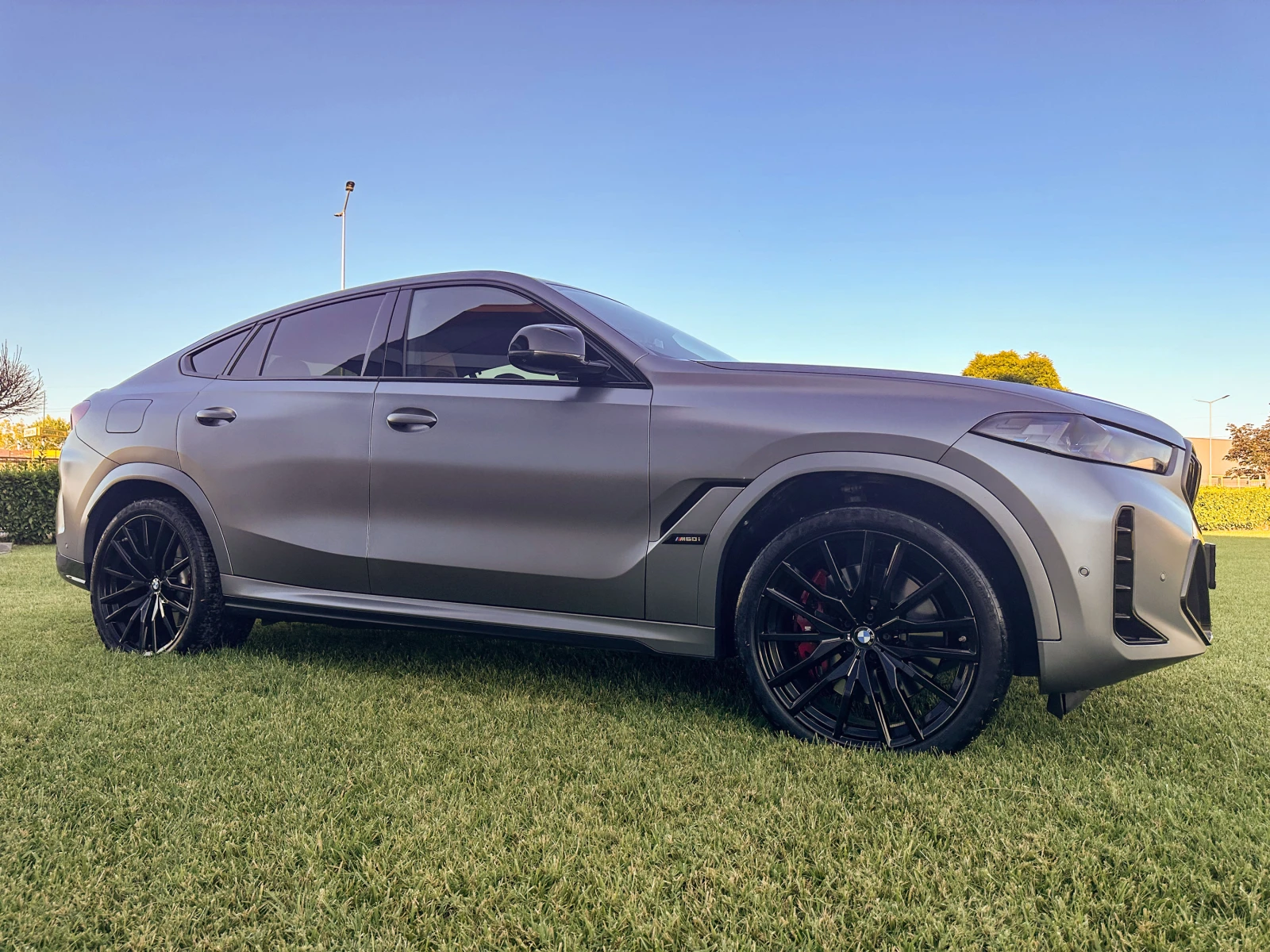 BMW X6 M60i M-SPORT: Frozen Pure Grey сив металик Тапицерия BMW individual кожа Merino Tartufo с пълен обхват Система за регулиране на енергията M SPORT изпускателна система HEAD UP Display Секретни болтове M SPORT диференциал Контрол на налягането на гумите Интегрално активно управление Алармена система Система за комфортен достъп Велурени стелки Триъгълник и аптечка Пакет огледала и разширени функции Амбиентно вътрешно осветление Асистент за дълги светлини Активна защита DAB тунер Телеуслуги BMW спешно повикване ConnectedDrive услуги Пакет Connected Professional Поставка за беззично зареждане Персонална eSIM карта М кожен волан М аеродинамичен пакет Външни декоративни елемнети M Shadowline гланц 22 M Алуминиеви джанти тип Double-spoke 742 M Комплект за ремонт на гуми Адаптивно М окачване Professional Резервна гума Интегрирано