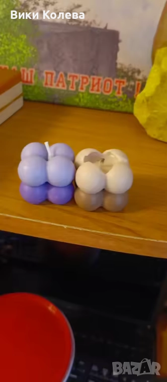 Дизайн: Създава модерната и търсена форма на куб от малки балончета (като показаната готова свещ).
