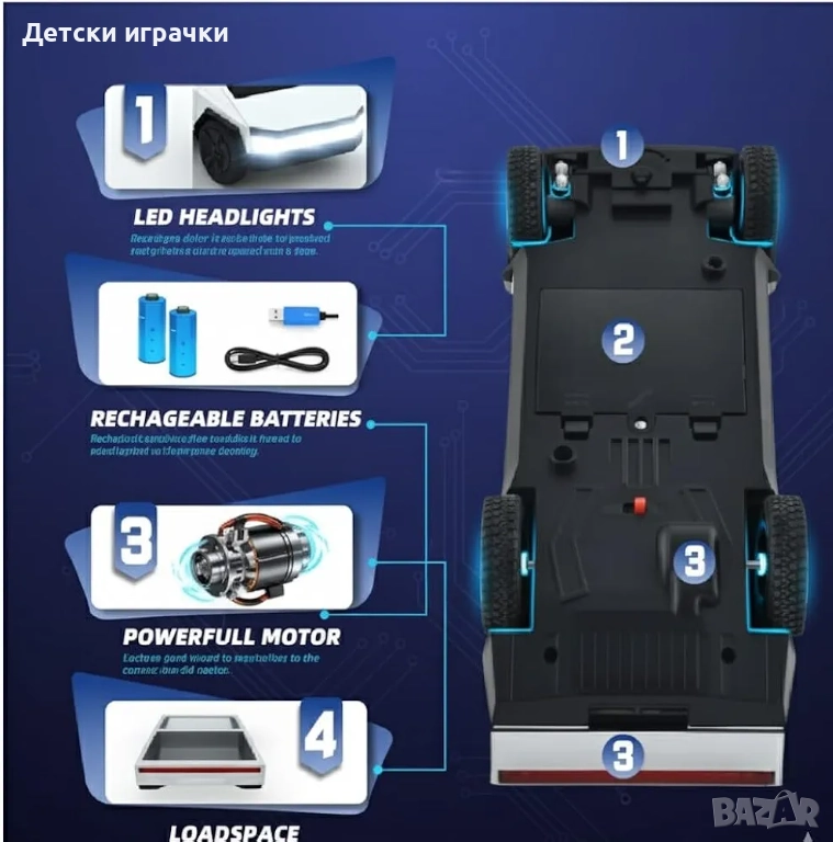Детайлен дизайн – Моделиран по емблематичния Cybertruck в зашеметяващи детайли.
