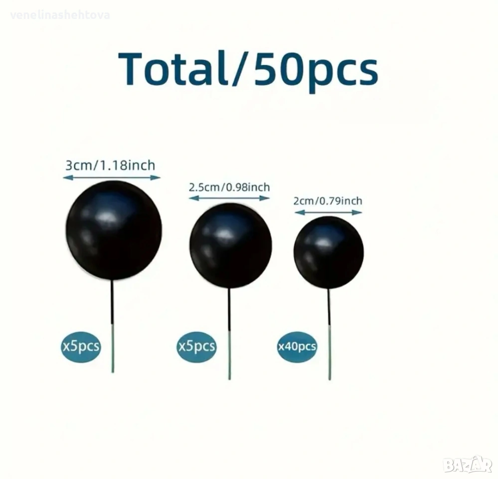 50 броя черни топчета топки на тел от стиропор за декорация на торта → Обява 52702000