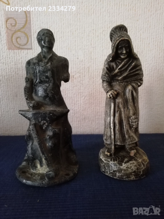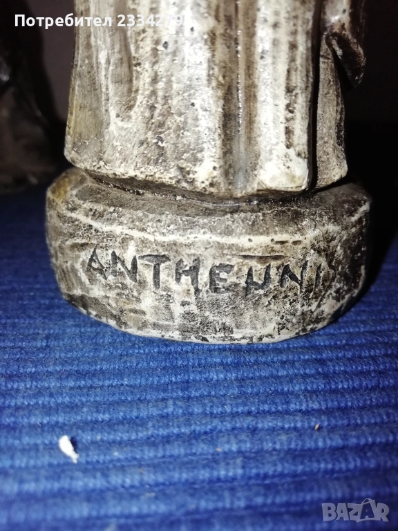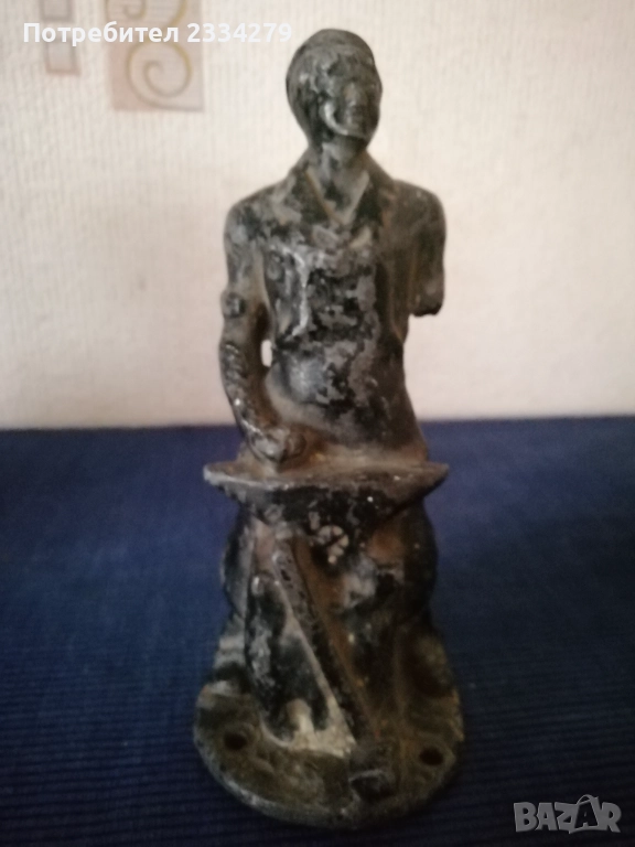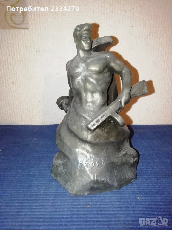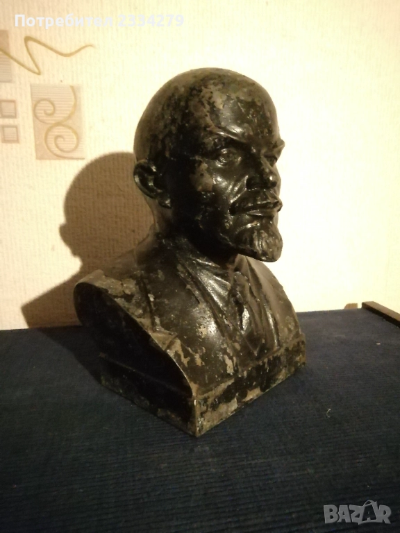 Стари статуетки от различни автори, години, държави и материали N:1 бюст- статуетка на водача на октомврийската революция В.И.Ленин, ръчна авторска отливка от аломиний с размери: дължина 17х11см., височина 25см., 100% автентичност с цена 39€.; N:2 стара статуетка ,,Войник от