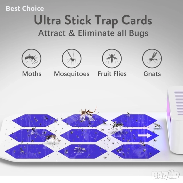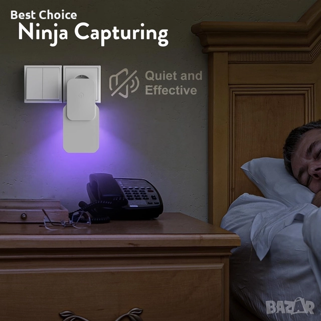 Включва се в контакт и използва UV светлина, за да привлича и улавя вредители като мухи, плодови мушици, комари и молци. Тъч бутон за ON / OFF. Безшумно и много ефикасно