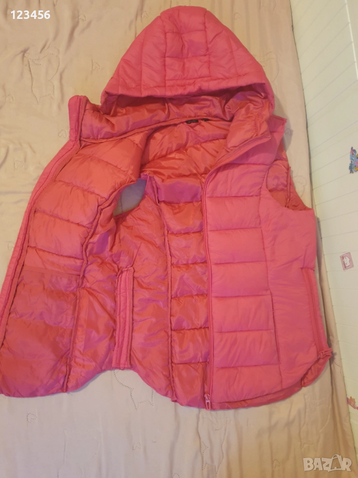 Дамска грейка нова ватиран елек с качулка размер S цвят циклама