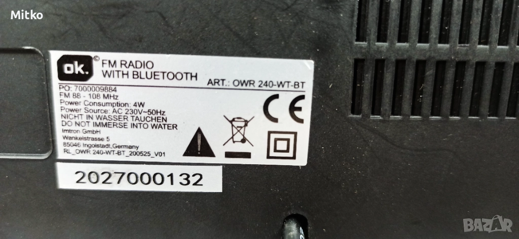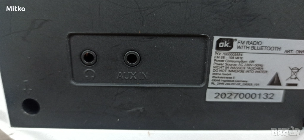 Предлагаме немско FM дигитално радио което има и вграден Блутут Bluetooth. Внос от Германия. В добър външен вид с нормални следи от ползване и 100% работещо. Има часовник, будилник, AUX и изход за слушалки. Може да се запаметяват станции. Идеално е за магазин, офис, кухня, детска стая, беседка, двор и др. помещения където има ограничено място. Също така е подходящо за възрастни хора, които по трудно се оправят с новите технологии. Изпращам с Еконт или Спиди с опция преглед и тест. Може да се пробва на място в гр. Хасково. Моля без тъпи предложения и бартери !