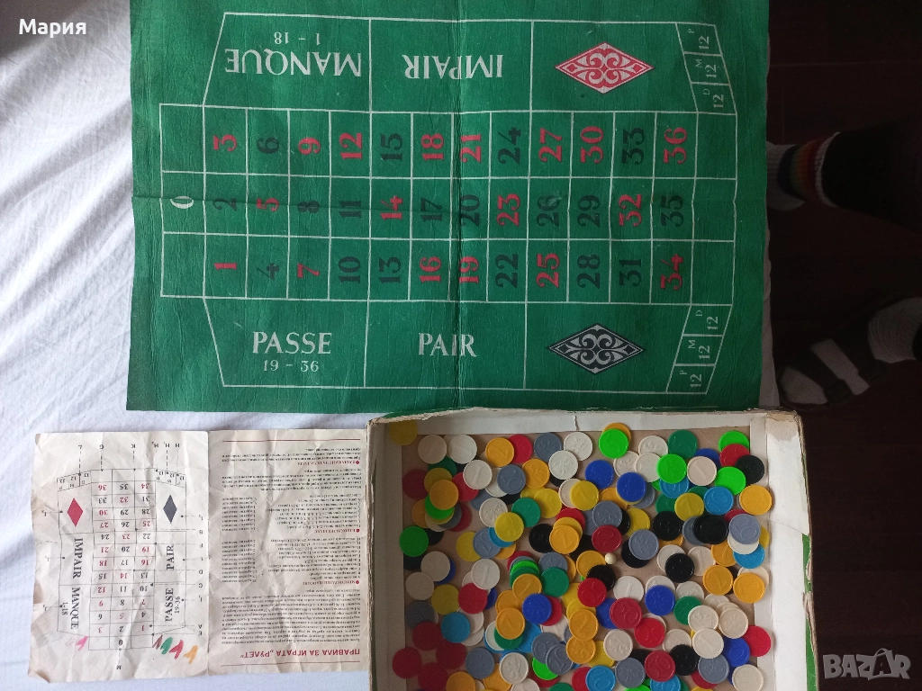 Рулетка за игра: жетони, платно за залози и упътване. Цена 7 лв