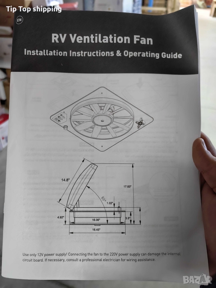 Захранване: 12V DC само; работи на филтриран DC; Монтаж: Clamp-fan (скобен) – база + покривен фланец + вътрешна рамка; монтаж на покрив с уплътнител (за каучукови покриви – EPDM-съвместим); Крепеж: 16 бр. самонарезни винтове №10, 3/4 САМО ЕДИН БРОЙ НАЛИЧЕН ‼️