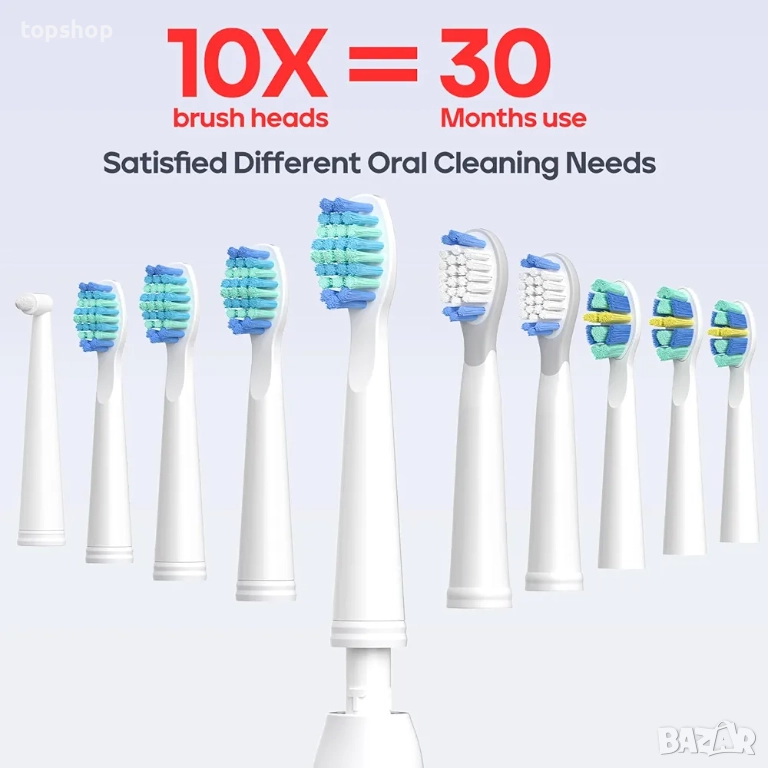 Чисто нова SEAGO Sonic четка за зъби за възрастни и деца, акумулаторни електрически четки за зъби с 10 глави (M10), бяла