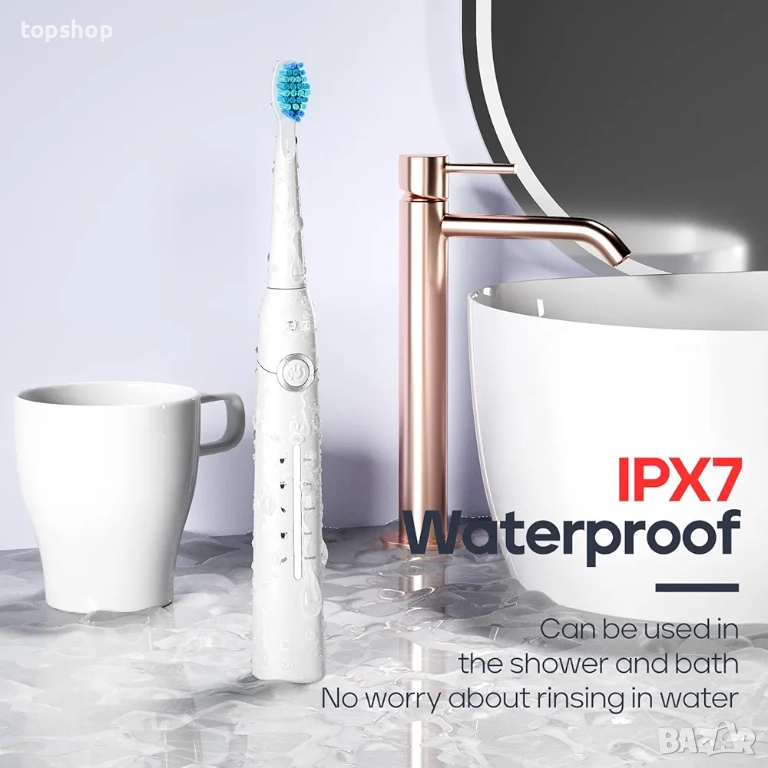 2-минутен таймер и водоустойчивост IPX7: Според професионалните препоръки, препоръчителният график за миене на зъбите е използването на акумулаторна електрическа четка за зъби с таймер и напомняния за 30-секундни интервали. Зъбите ви могат да бъдат по-здрави, ако практикувате научна орална хигиена. Можете да използвате електрическата звукова четка за зъби SEAGO безопасно, докато се къпете или вземате душ, благодарение на водоустойчивия ѝ дизайн IPX7.