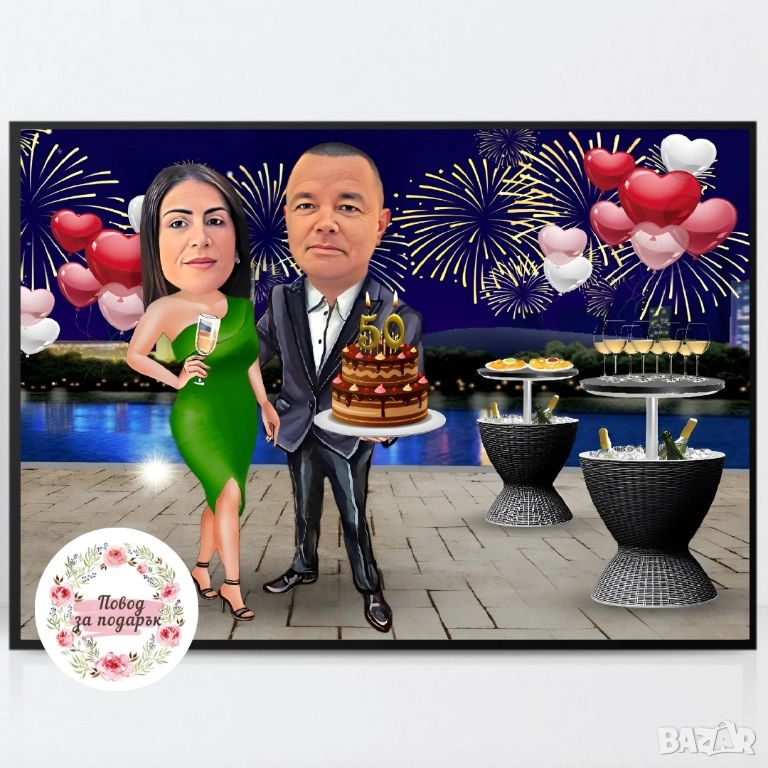 💝 Дигитална карикатура/шарж, която се изработва с ваши снимки и тема по ваш избор. Страхотен и оригинален подарък, подходящ за всеки повод.