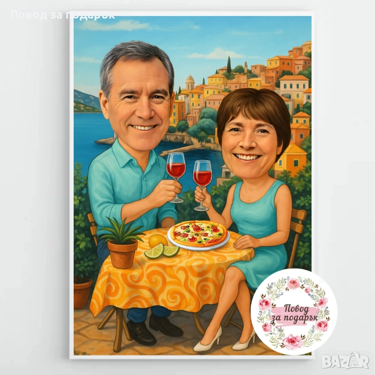💝 Дигитална карикатура/шарж, която се изработва с ваши снимки и тема по ваш избор. Страхотен и оригинален подарък, подходящ за всеки повод.