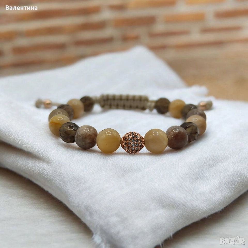 Дамска гривна с натурални камъни и 925 сребърни елементи с покритие от розово злато → Обява 52704682