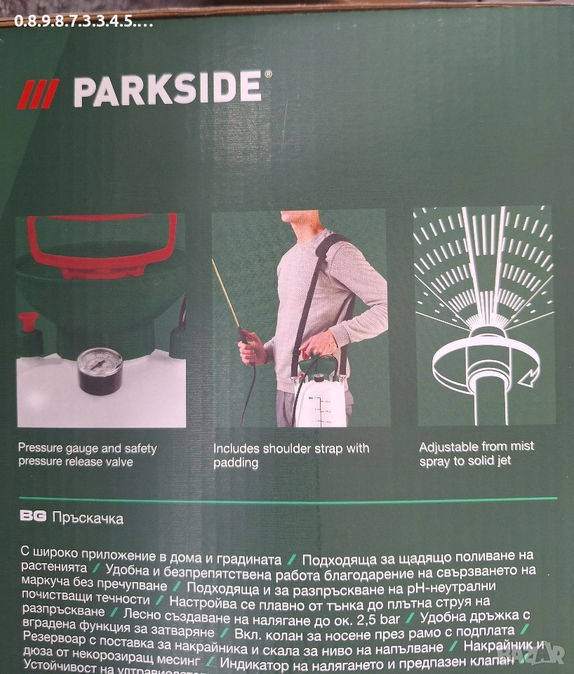 пръскачка Парксайд с широко приложение за дома и градината на Parkside , снимка 1 - Градинска техника - 52704802 пръскачка Парксайд с широко приложение за дома и градината на Parkside , снимка 2 - Градинска техника - 52704802 пръскачка Парксайд с широко приложение за дома и градината на Parkside , снимка 3 - Градинска техника - 52704802 пръскачка Парксайд с широко приложение за дома и градината на Parkside , снимка 4 - Градинска техника - 52704802 пръскачка Парксайд с широко приложение за дома и градината на Parkside , снимка 5 - Градинска техника - 52704802 1/5