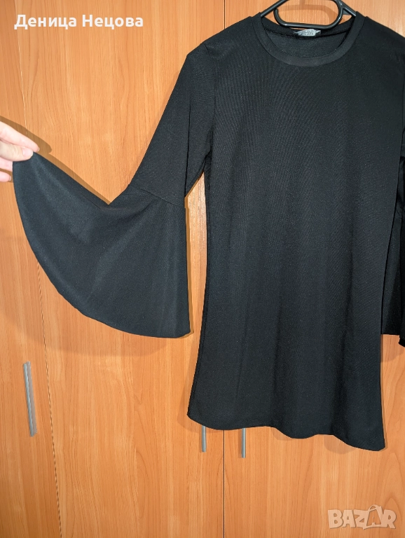 Къса черна рокля с широки ръкави, снимка 1 - Рокли - 52704841 Къса черна рокля с широки ръкави, снимка 2 - Рокли - 52704841 Къса черна рокля с широки ръкави, снимка 3 - Рокли - 52704841 Къса черна рокля с широки ръкави, снимка 4 - Рокли - 52704841 1/4