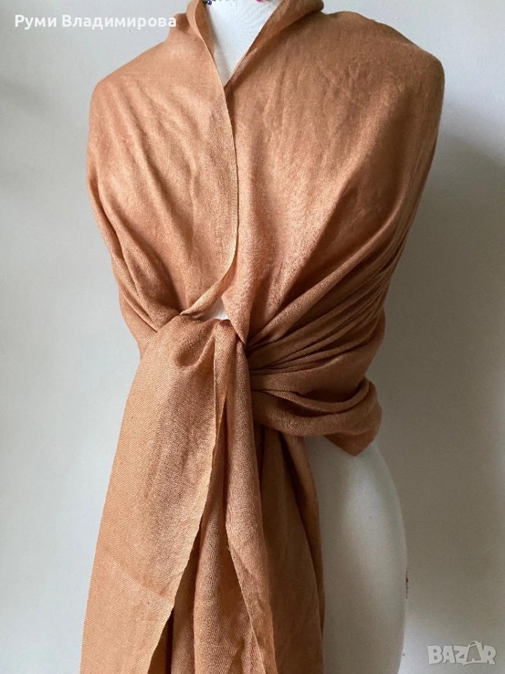 Бежов и карамелен шал от 100 % кашмир, 2 броя → Обява 52704853