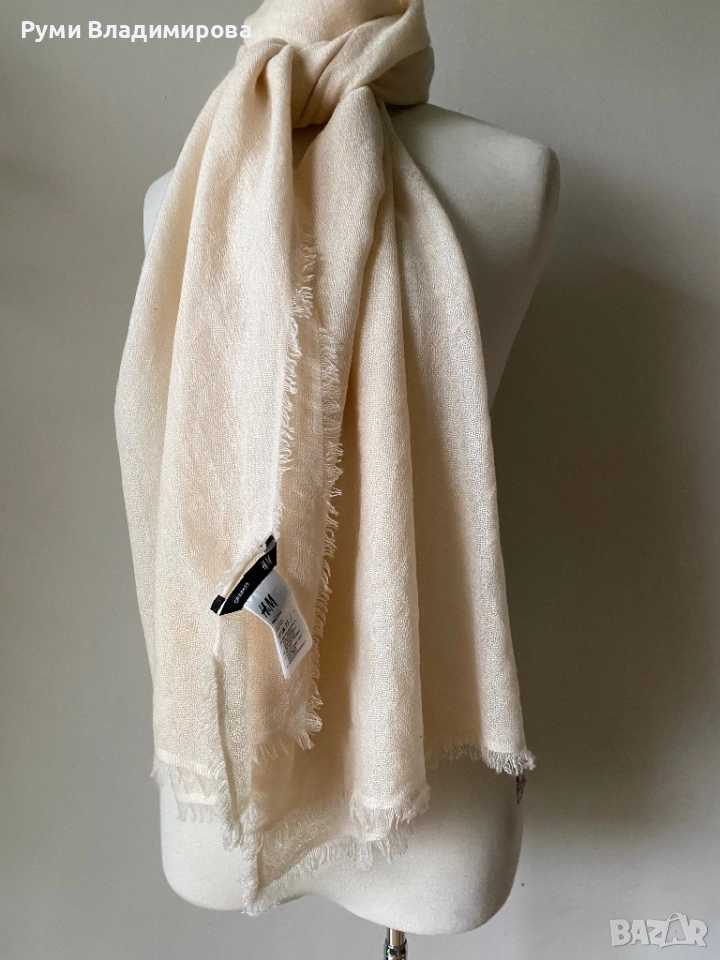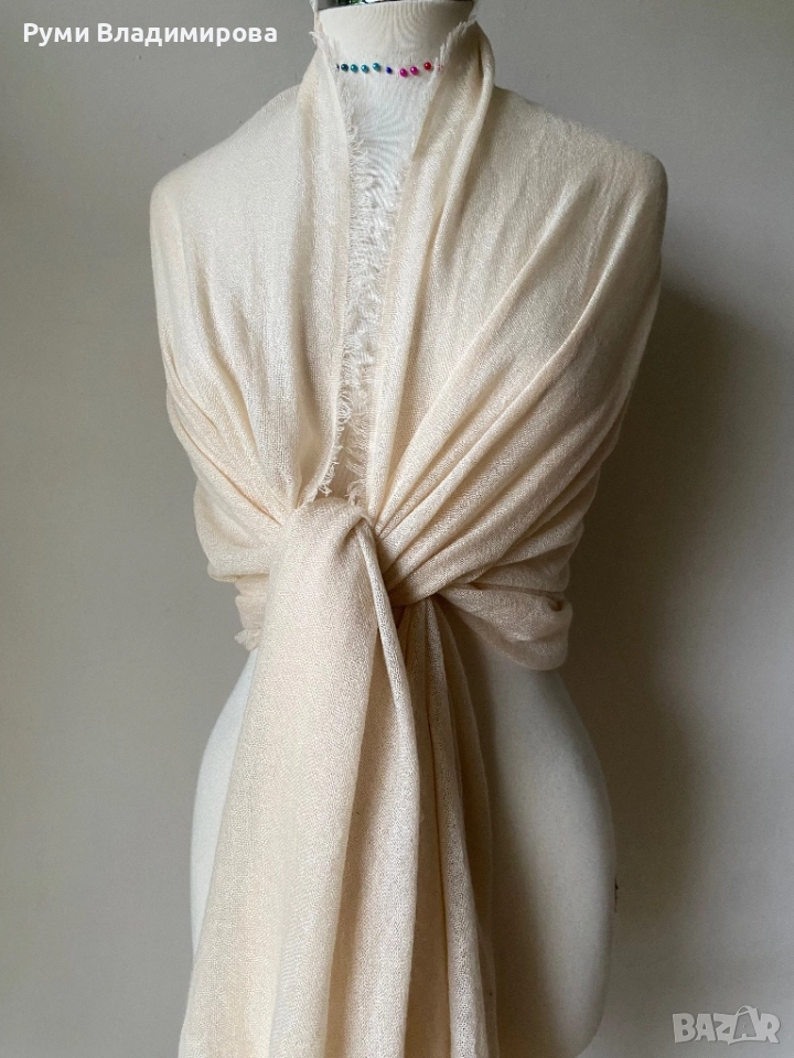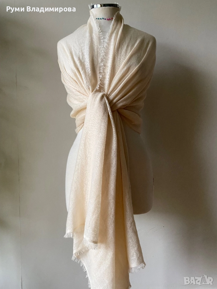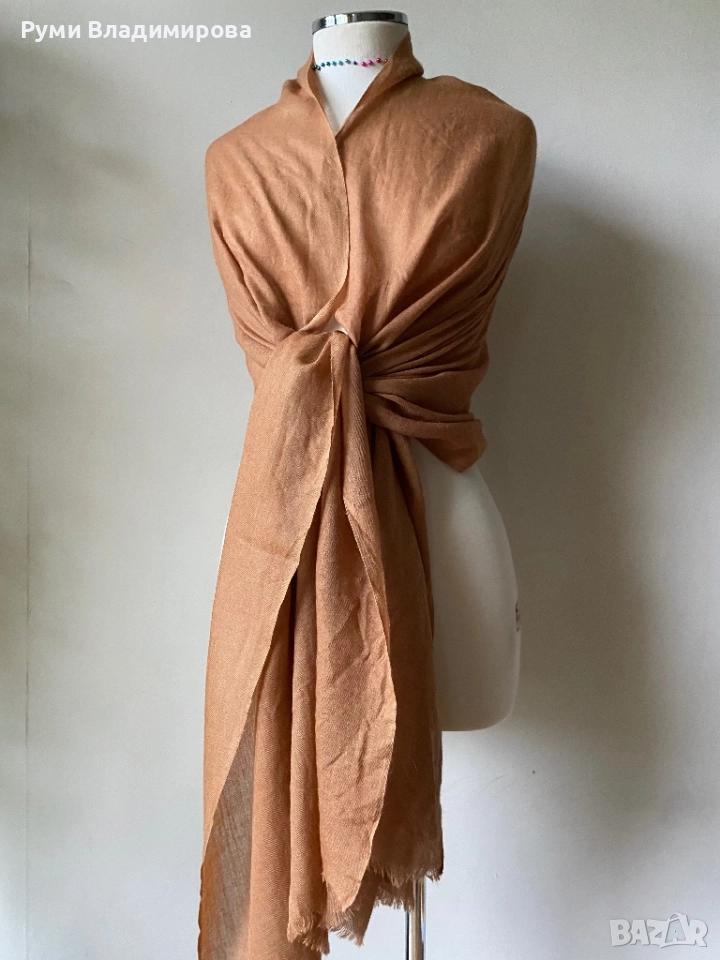Бежов шал и шал в цвят канела от 100 % кашмир, фина, прозираща, мека материя, , единия е HM, a другия е от областта Кашмир в Индия, еднакъв размер, голям правоъгълник, нови, доставка с Еконт, цена за двата 23 €.