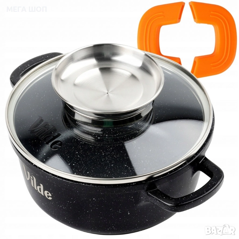 Универсална гранитна касерола с незалепващо, със стъклен капак и дозатор за течности