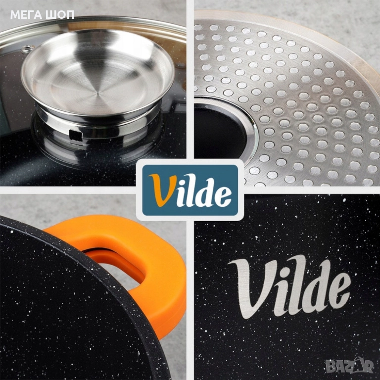 Материал: Висококачествен лят алуминий с гранитно (мраморно) незалепващо покритие, безопасно за храни;