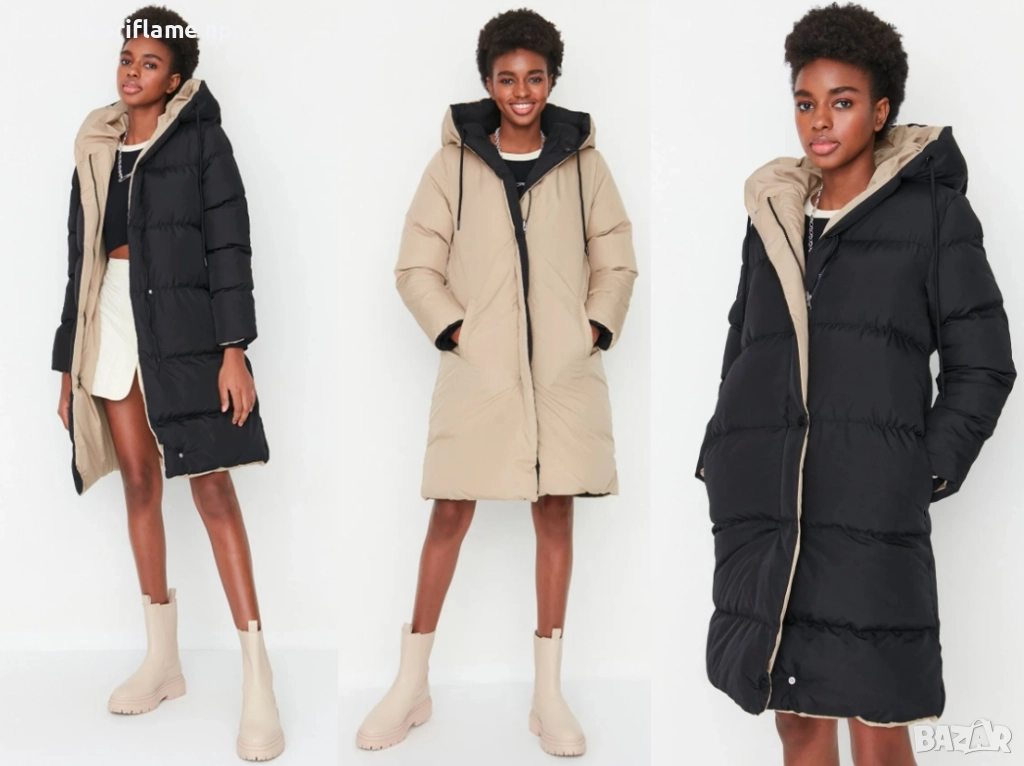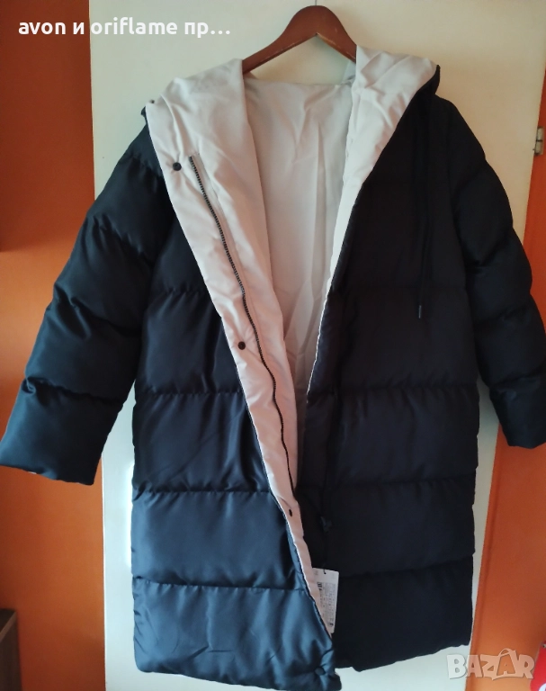 Черно-бежово двустранно водоотблъскващо яке с качулка, размер Л - 52 лв.