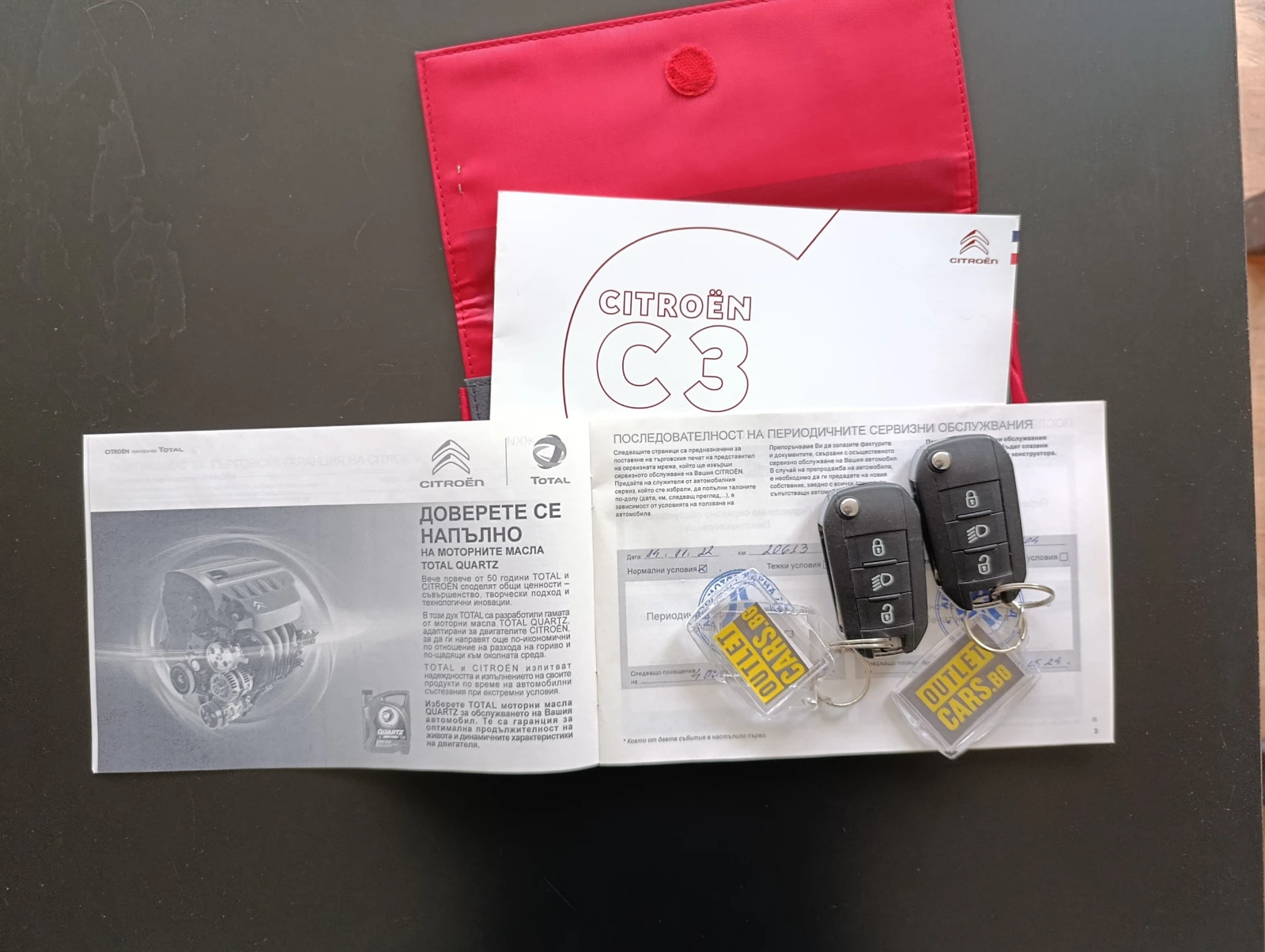 OUTLETCARS Ви представя върнат от лизинг автомобил Citroen C3 1. 2 PureTech 83hp. ********************************* -Закуп ен от Официалното представителство на марката за страната има пълна сервизна история която може да бъде проверена. Обслужван съгласно сервизния план на производителя в оторизираните сервизи. Безупречна работа на двигател, скорости и ходова част. Цялостен доклад за техническото състояние на нашият сайт. ****************************** Ниво на оборудване: Shine+ Климатроник, Citroen Connect Radio с Mirror Screen функция (Android Auto и Apple Car Play), 2х ел. стъкла, ел. сгъваеми огл. с отопление, центр. закл. , заден паркинг сензор, фарове за мъгла, Пакет видимост: Авт. Светлини, авт. Чистачки, Функция Follow me home; Стоманени джанти 16" с тасове 3D Steel and Style ************************* Последно обслужване; -1. 10. 2025 г. 117659km. Оторизиран Сервиз на Ситроен: ЕС ЕФ ЕЙ РИТЕЙЛ 3 -Шесто сервизно обслужване: 1. Смяна на масло TOTAL 0W20; 2. Маслен филтър; 3. Въздушен филтър; 4. Поленов; 5. Смяна запалителни свещи. ********************** Платена Застраховка Гражданска Отговорност Валиден технически преглед до: 11. 04. 2027г. Регистриран и платен данък. Съдействие с нотариус. 2бр. Оригинални ключа! За огледи и информация телефон: Работно време: Понеделник - Петък 9: 00h - 18: 00h.