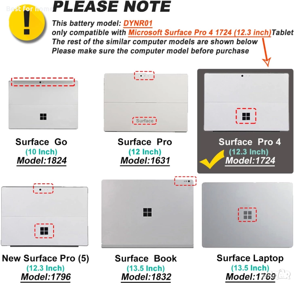 Заместител на номер на частта: DYNR01 G3HTA027H за батерия за Surface Pro 4