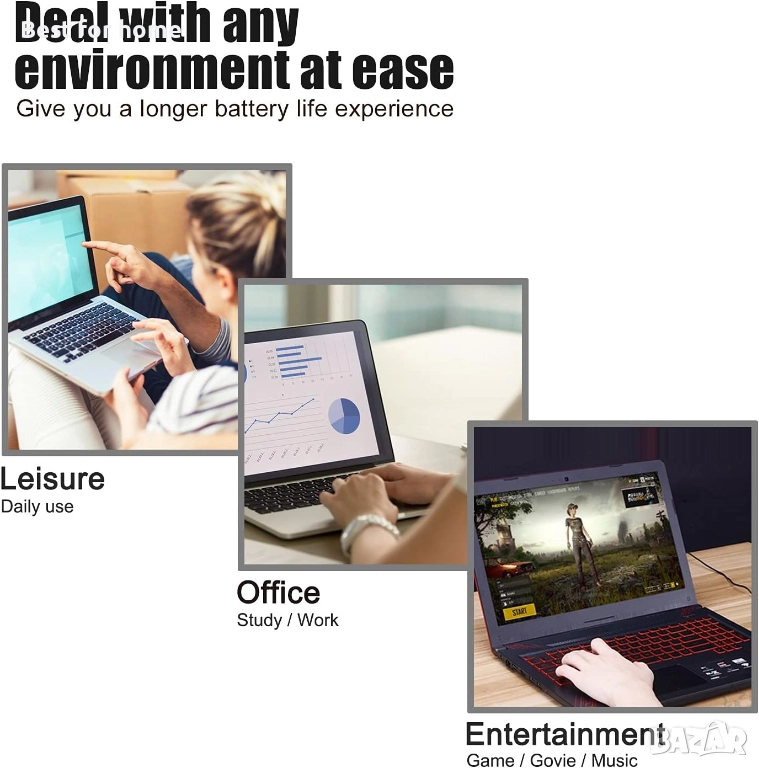 Забележка: Въпреки че батериите са съвместими с лаптопа, може да има малка разлика в дължината на кабелите им от оригиналните батерии, затова е силно препоръчително да проверите точния номер на частта на оригиналната батерия на вашия лаптоп.