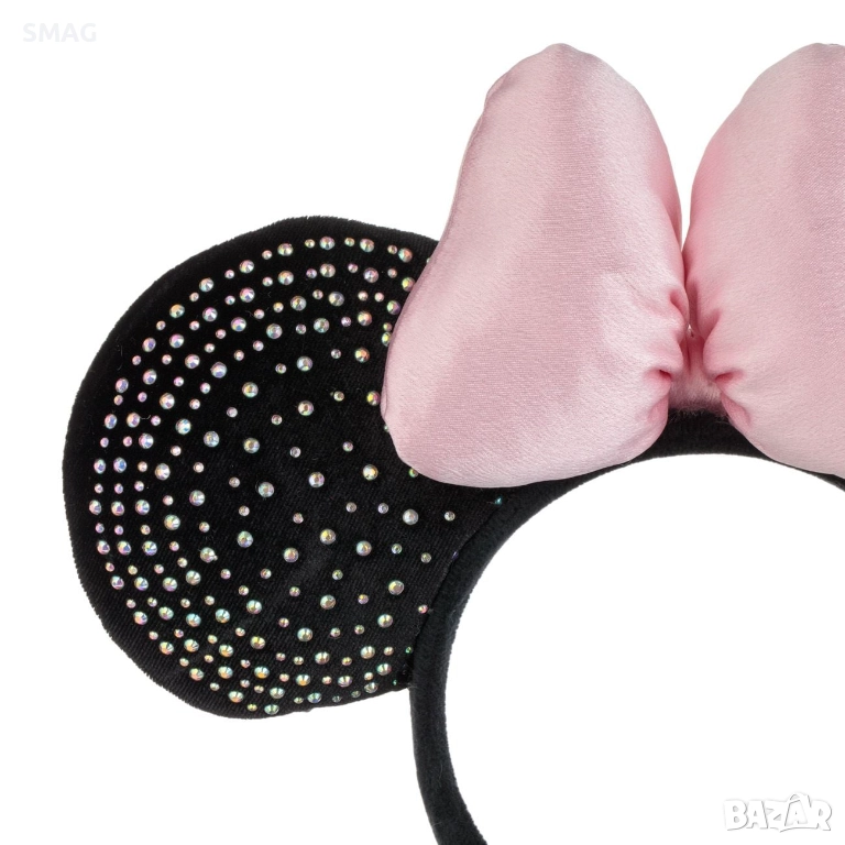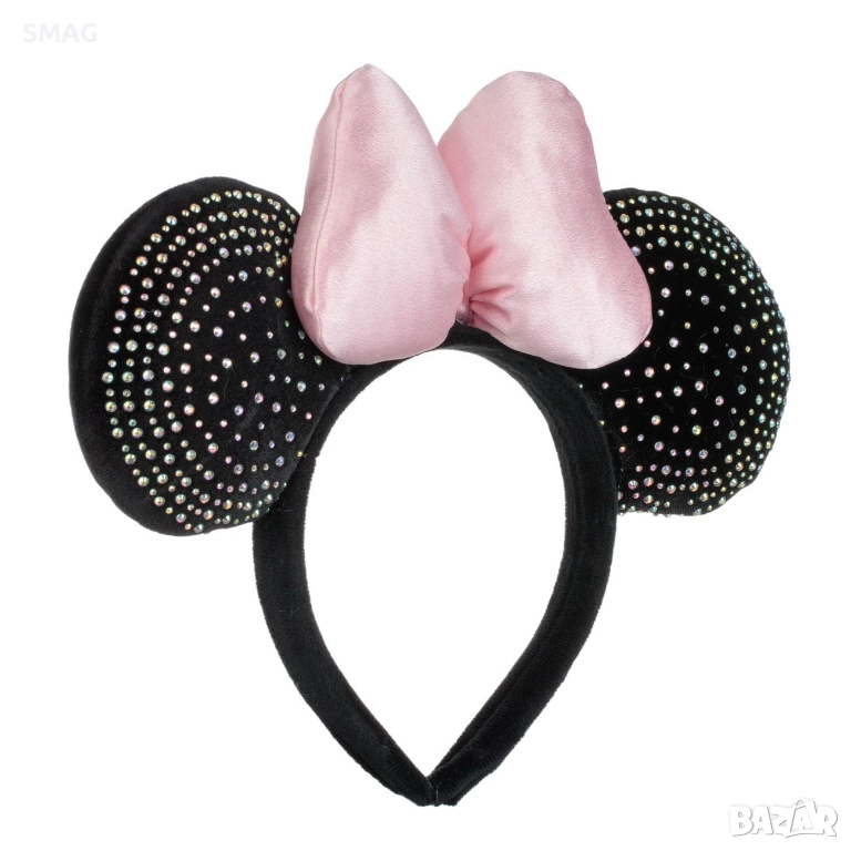 Стилна коледна кадифена диадема с черни ушички на мишле, обсипани с многоцветни камъчета, допълнени от нежна розова сатенена панделка. Перфектният избор за модерна и игрива празнична визия – подходяща за коледни партита, училищни тържества, фотосесии и тематични събития.