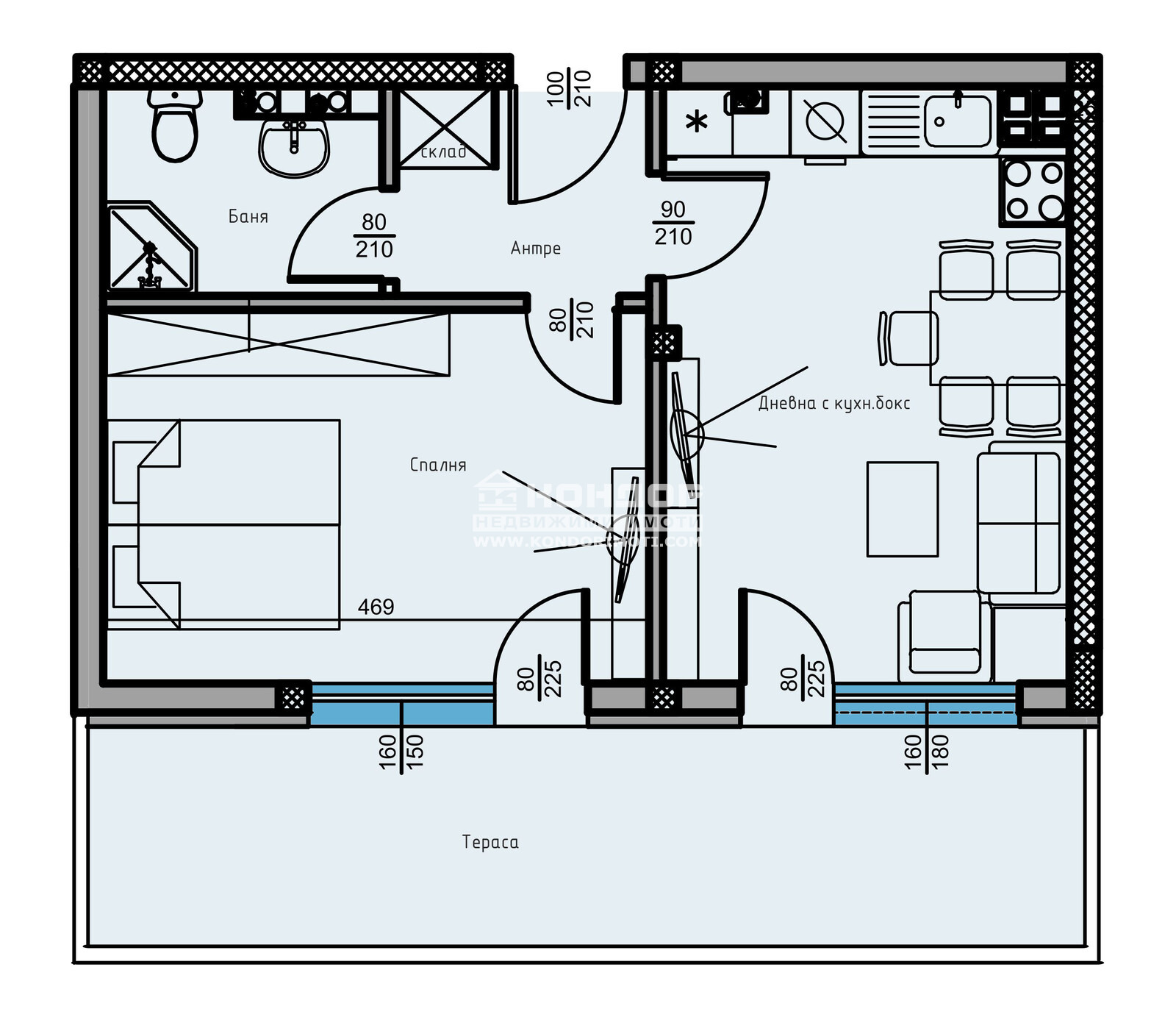 Оферта 68486 -Фиксирани Цени - без опция за промяна по време на строителството !!! Сега имате възможността да си закупите функционален 2-стаен апартамент в малка новоизградена луксозна сграда, проектирана така, че да създаде максимален комфорт и уют с изключително нисък процент общи части - 13.00 %. Страхотна Локация в един от най-бързо развиващите се райони с нискоетажно застрояване на тихо и спокойно място в близост до всички необходими комуникации. Жилището се състои от дневна с трапезария и кухненски бокс, една голяма самостоятелна спалня - 15 кв.м., баня с тоалетна, входно антре със склад, подходящ за перално помещение и една панорамна тераса 18кв.м., обща и за двете стаи. Обектът е построен от фирма с доказан опит и множество завършени проекти , осъществени с висококачествени материали и съвременни технологии, по европейски стандарти, шесткамерна PVC дограма, червена Австрийска Тухла, масивна Блиндирана входна врата с 4-странно заключване, сензорно осветление, хидравлични асансьори с огледална кабина. Свободни Паркоместа в двора на цени от 13000 евро!!!Възможност за закупуване чрез Банков Кредит или на разсрочено плащане в рамките на строителството !!! ЧУДЕСНА ИНВЕСТИЦИЯ! Възползвайте се от възможността да живеете в малка бутикова сграда.