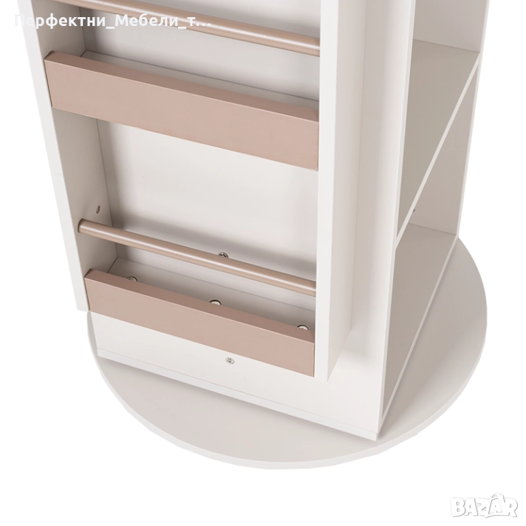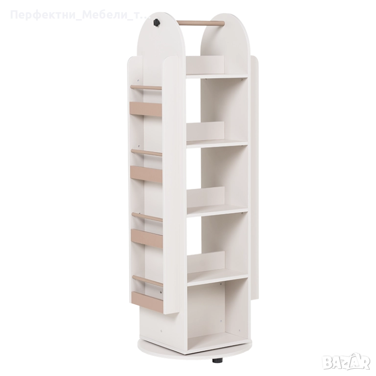 стелаж,етажерка на 360 градуса,организаращ във височина и с лесен достъп място за съхранение на книги,офис материали,играчки,учебни помагала,подаръца и албуни.