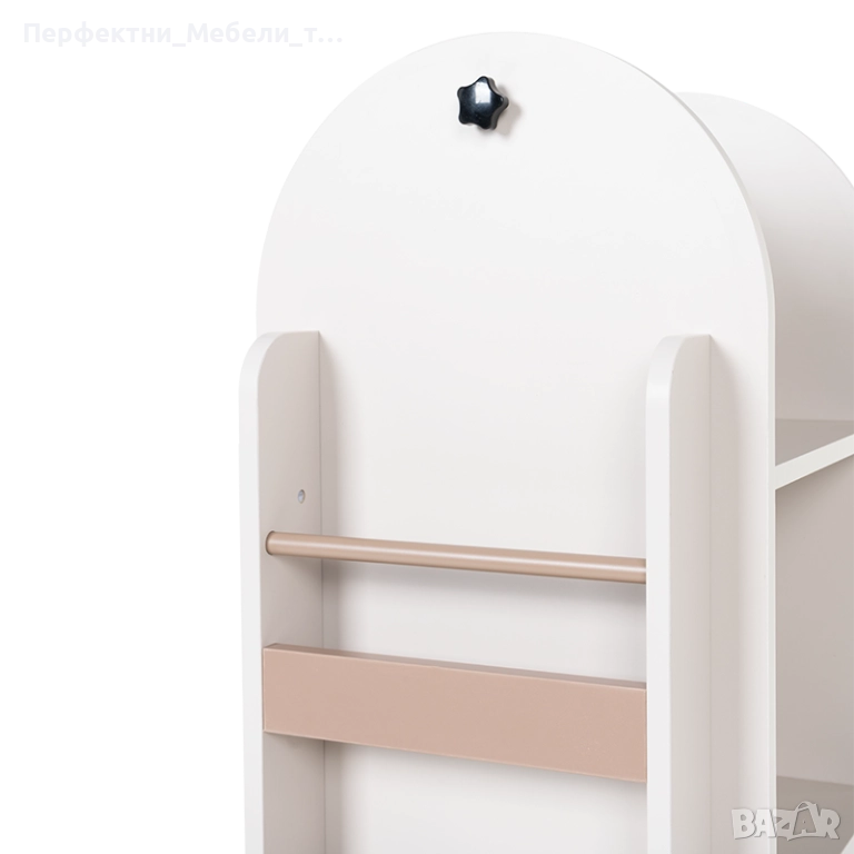 елегантно и иновативно решение за съхранение, съчетаващо дизайн и функционалност в един завършен продукт. Моделът разполага с няколко нива рафтове от всички страни, което позволява организиране на книги, играчки и аксесоари по достъпен и визуално привлекателен начин. Кръглата въртяща се основа осигурява лесен достъп от всяка страна, а компактната форма я прави подходяща за поставяне в ъгъл или до бюро. Благодарение на неутралните цветове и приятните заоблени форми,се вписва хармонично както в детска стая, така и в модерен дом,офис,държавна администрация,приемна за клиенти,банки,търговски обекти