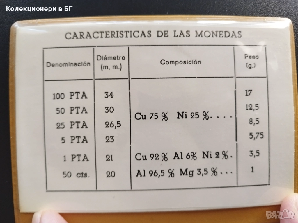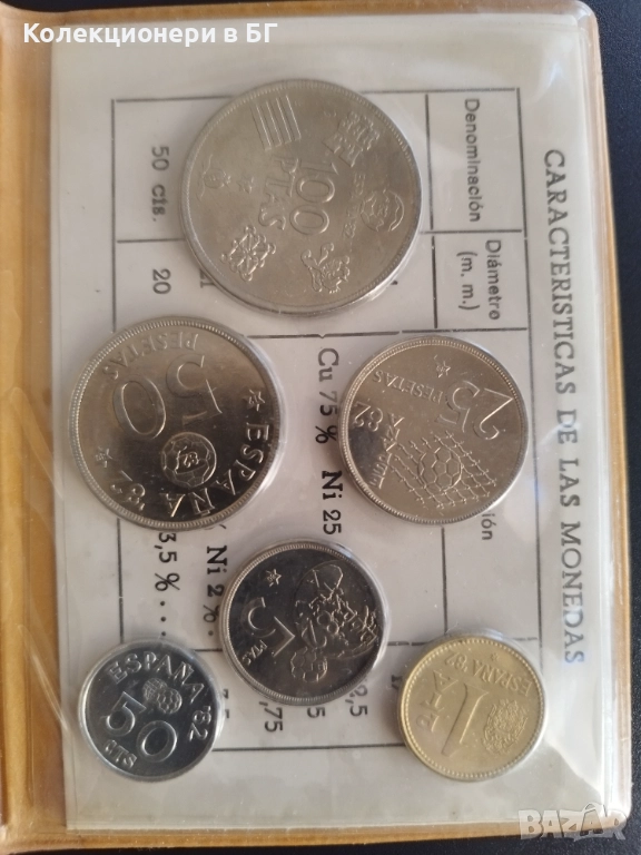 ✅ 50 сентимос, 1, 5, 25, 50 и 100 песети;
