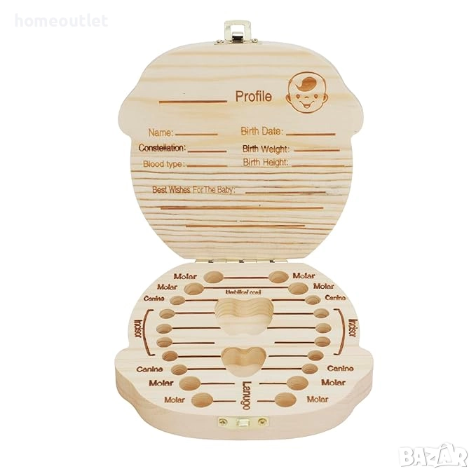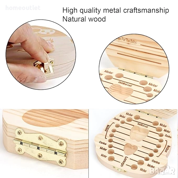 Кутията за съхранение на млечни зъби е изработена от висококачествена дървесина с естествена и красива текстура, безопасна и дишаща, и може да съхранява предмети за дълго време.
