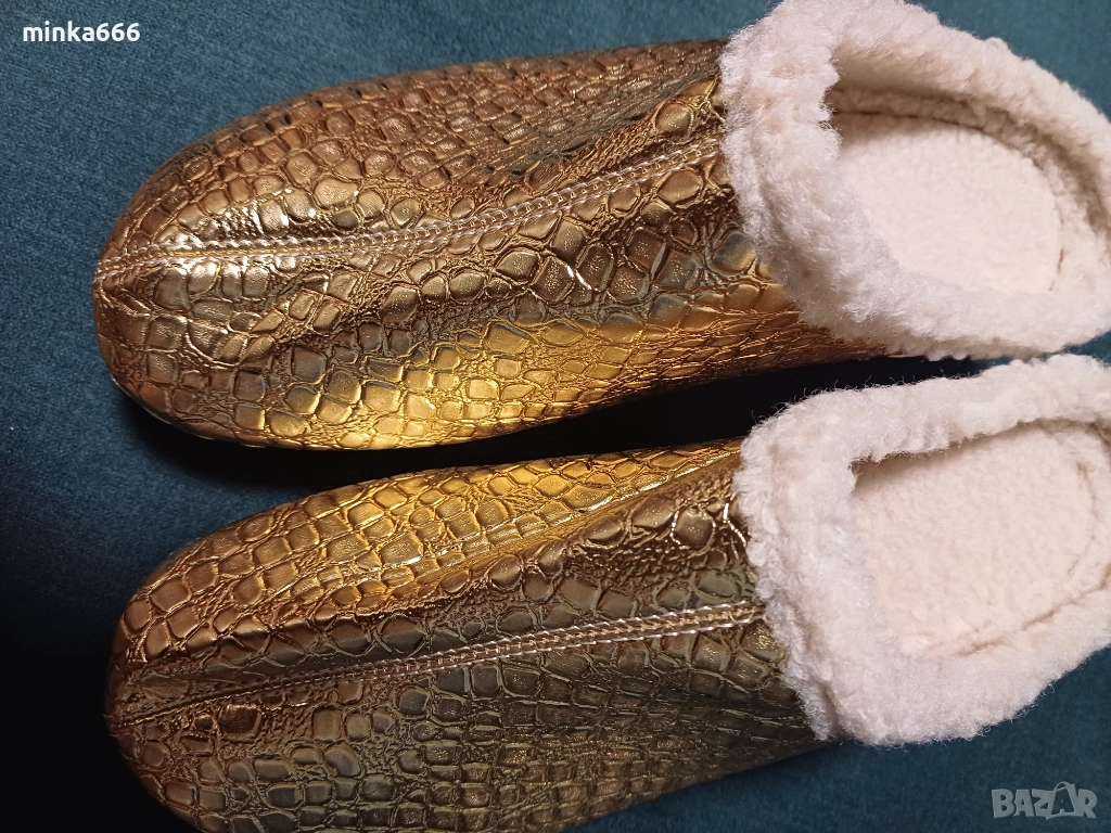 Топли златисти домашни пантофи → Обява 52709287