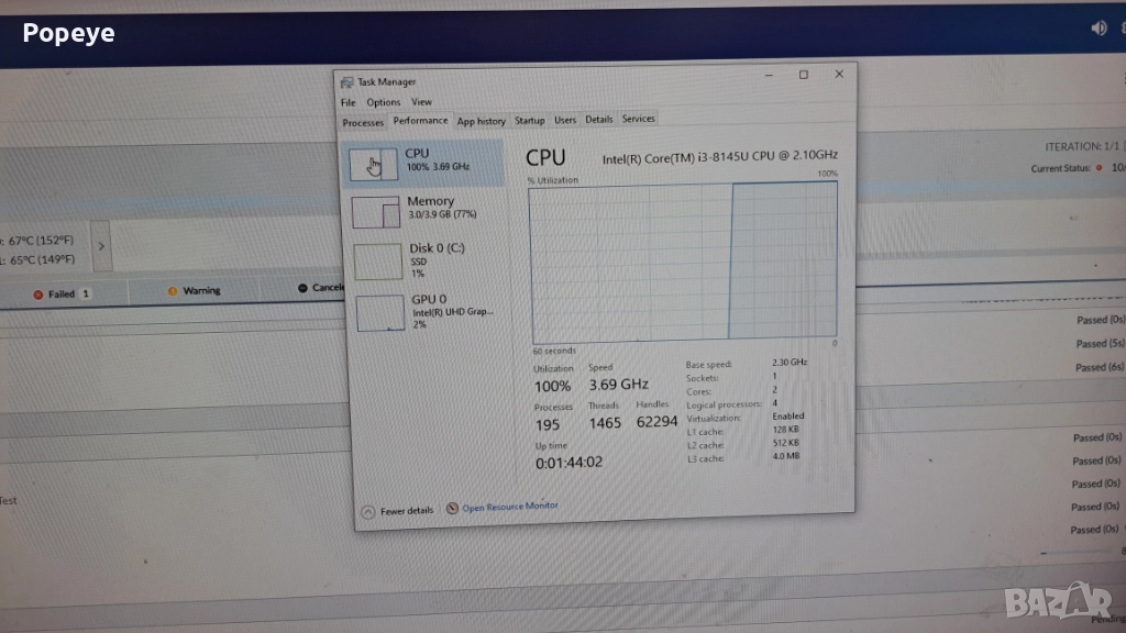 Процесор:Двуядрен Intel Core i3-8145U (2.10 - 3.90 GHz, 4 MB Cache)