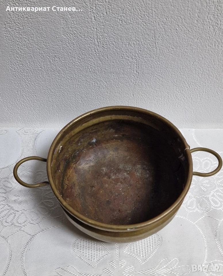 🔱 Старинна месингова купа с дръжки – скандинавско изящество с битов дух