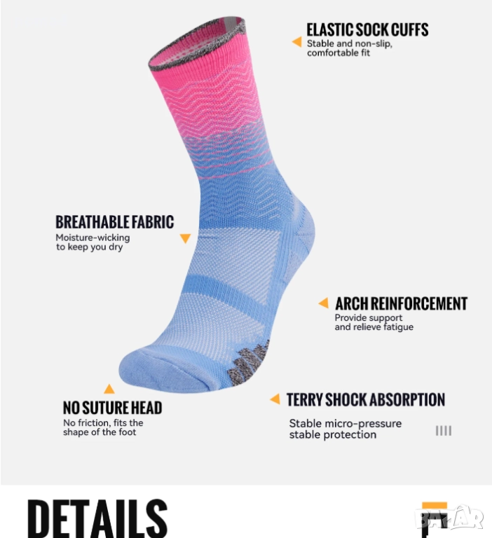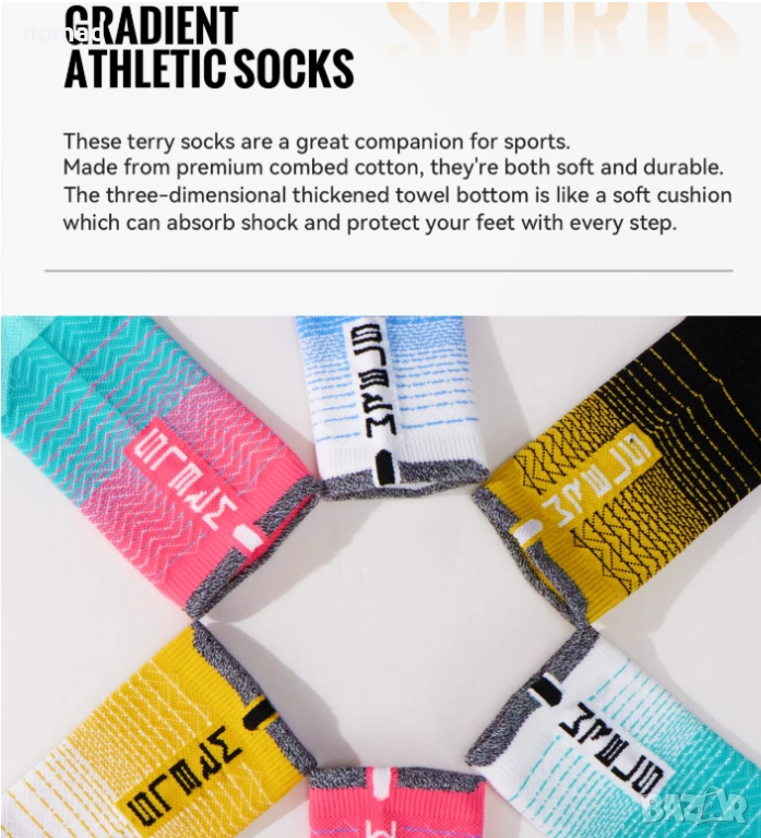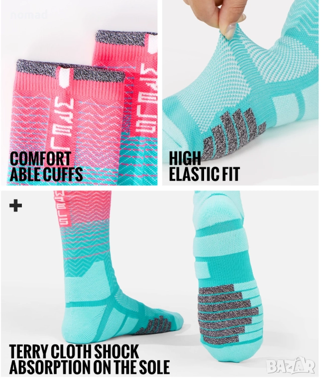Премиум спортни чорапи с висока кройка, дебела хавлиена подметка и защита против хлъзгане. Подходящи за бягане, баскетбол, фитнес, туризъм и интензивни тренировки.