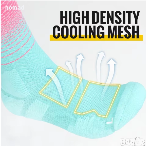 Дишащата материя и вентилационните канали отвеждат потта, поддържат краката сухи, а компресията и омекотяването предпазват от пришки.