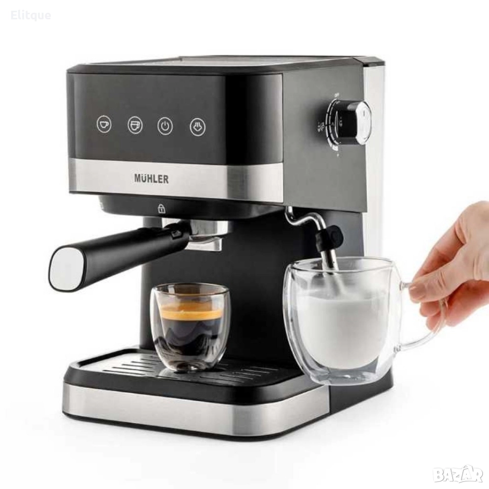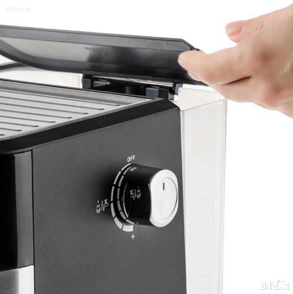 Еспресо машина. Мощна помпа за налягане 20 Ваг 1.5 литра подвижен резервоар за вода Двоен метален филтър за перфектен аромат, вкус и каймак на кафето. Крема диск Функция разпенване на мляко за приготвяне на капучино Разглобяема дюза за пара. Светлинни индикатори за готовност на помпата и парата.