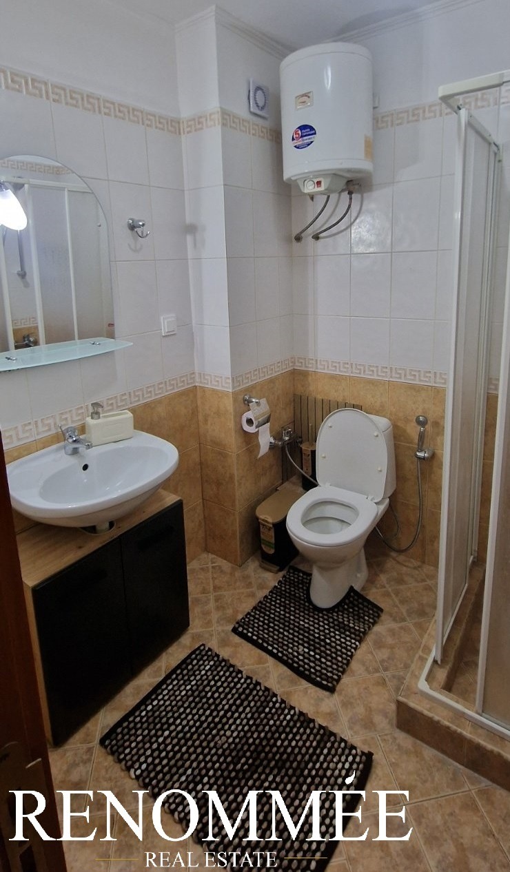 Състои се от антре, хол, кухня, спалня, баня с тоалетна, страхотна тераса. Обзавесен е с нови и модерни мебели и уреди. Готов за наемане ВЕДНАГА! Свободно паркиране пред блока. Коректен наемодател.