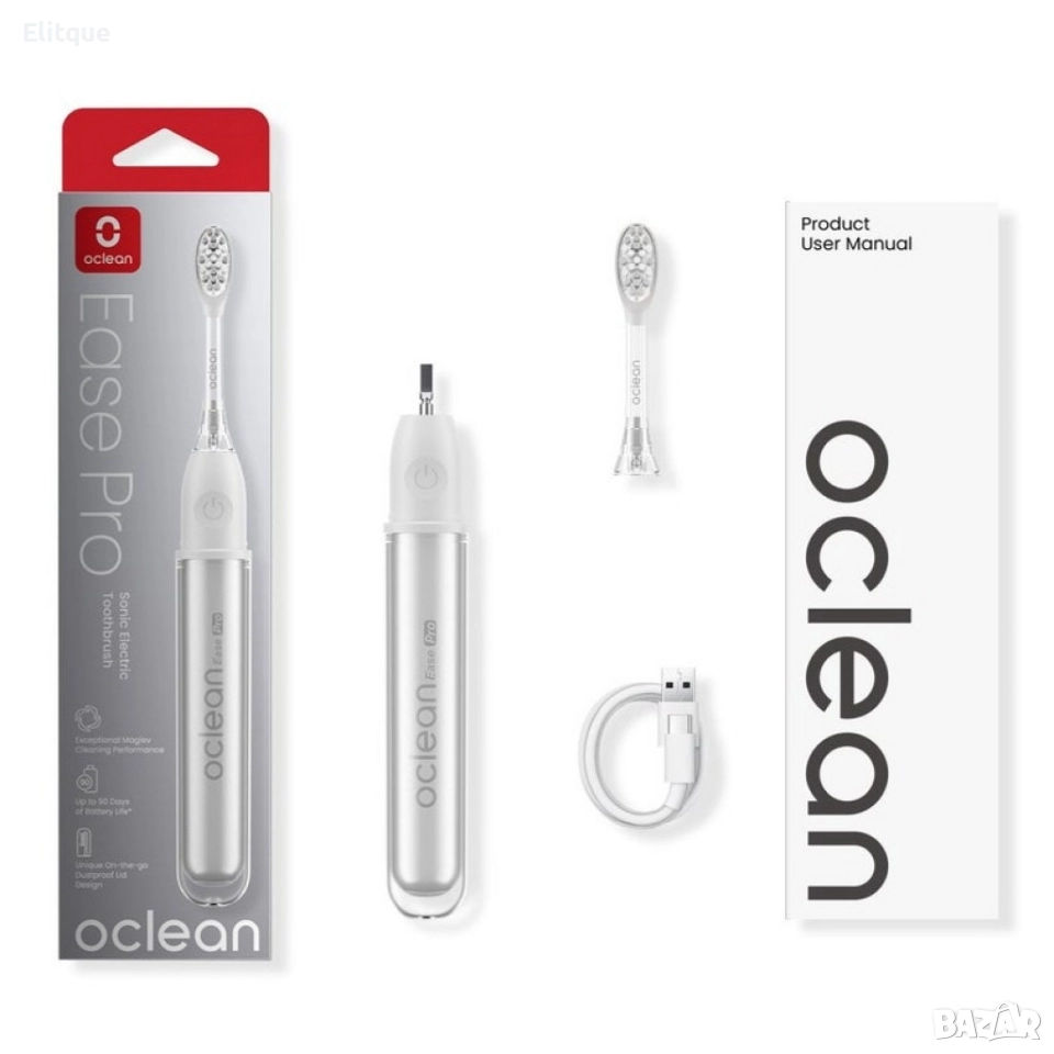 Продукт: Електрическа четка за зъби Oclean X Ease Pro; Основен проблем: Недостатъчно ефективно почистване с обикновени четки, водещо до натрупване на плака и понижаване на оралната хигиена; Решение: Мощна звукова технология с до 72 000 оборота в минута и персонализирани режими за премахване на плака и грижа за венците; Функции: 5 режима на почистване; До 90 дни живот на батерията; Прахозащитен пътен капак / дръжка; Супер тиха – 55 dB; Водоустойчивост IPX7; Зареждане с Type-C кабел; Допълнителни ползи: Лек корпус – само 67 г, лесна за носене, стилен дизайн в два цвята, подходяща за домашна и пътна употреба; Гаранция: 24 месеца.