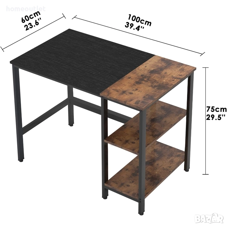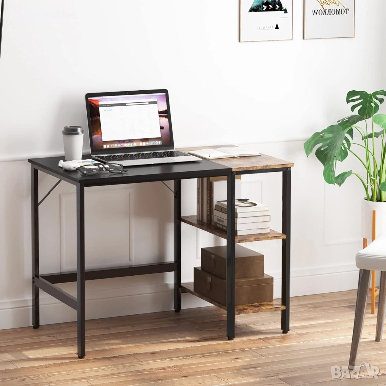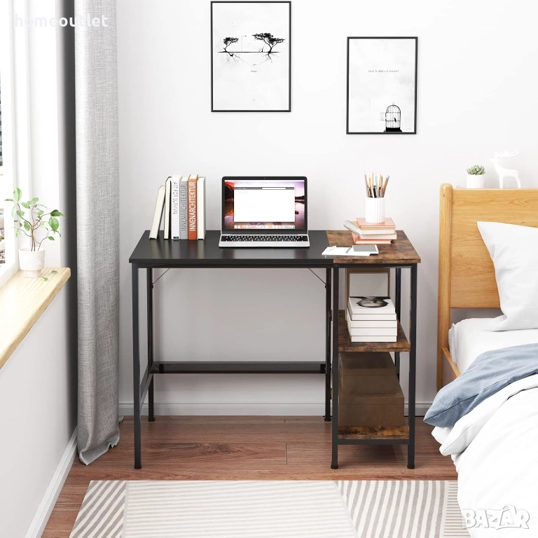 Бюрото разполага с двуетажен страничен рафт, подходящ за съхранение на книги, документи, офис консумативи или други вещи.