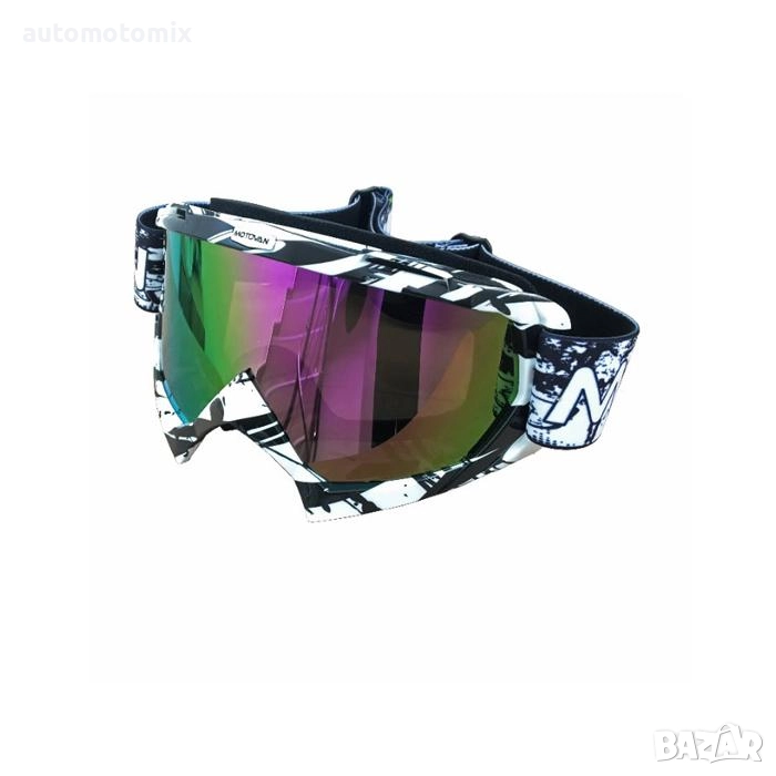 Очила за крос ендуро, атв Motsai, Черен/Бял преливаща слюда - 181984
