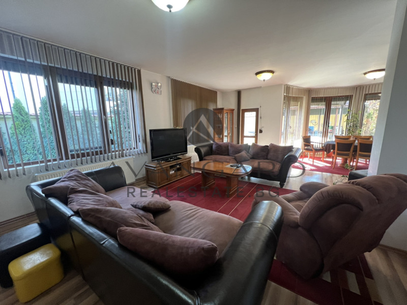 ЕТАЖ ВТОРИ Е С ПЛОЩ ОТ 120 кв.м И СЛЕДНОТО РАЗПРЕДЕЛЕНИЕ ; три просторни спални, от които едната със самостоятелна баня с тоалетна ,гардеробна и лична тераса. На етажа е разположена и втора баня с тоалетна, гардеробна и втора голяма обща тераса. Къщата е оборудвана с климатици, локално парно, трифазен ток, термо панел, сонда, сот и напоителна система. Дворът е поддържан и зелен, има място за паркиране на 4-5 автомобила под просторния навес. Имотът разполага и с гараж, в който се намира и котела за локалното парно. Имотът е идеален избор за тези, които искат да живеят сред спокойствие и природа, без да се лишават от удобствата на града.