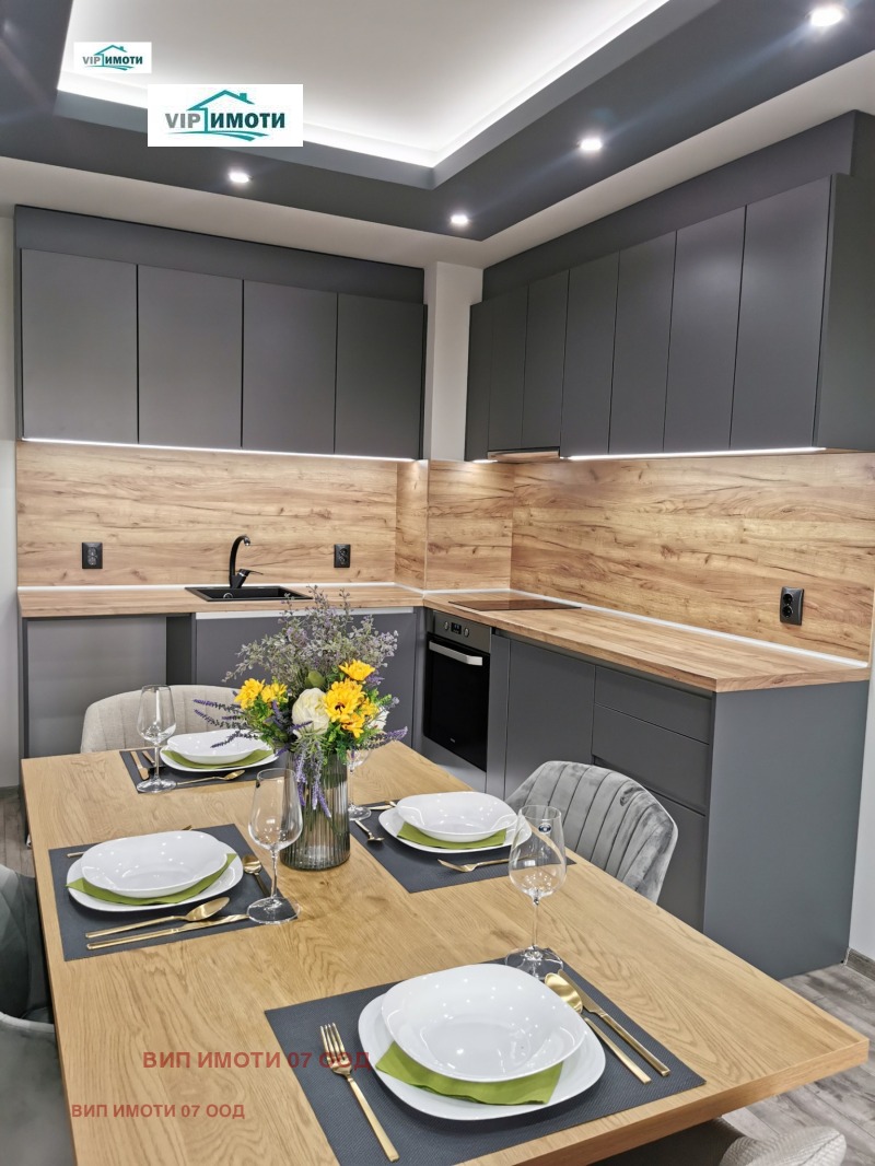 Апартаментът разполага с две спални, като едната е напълно обзаведена, просторна всекидневна с кухненски бокс и излаз към тераса, както и стилна баня с тоалетна. Жилището е реновирано изцяло, като са използвани материали от най-висок клас: дограма Gealan в антрацит, индивидуално изработена кухня с вградена техника TEKA, скрито LED осветление, венециански мазилки, изолация и