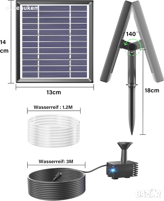 Функции: Защита от сух ход, филтър, соларно захранване